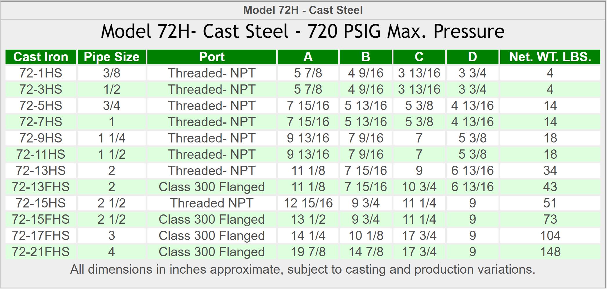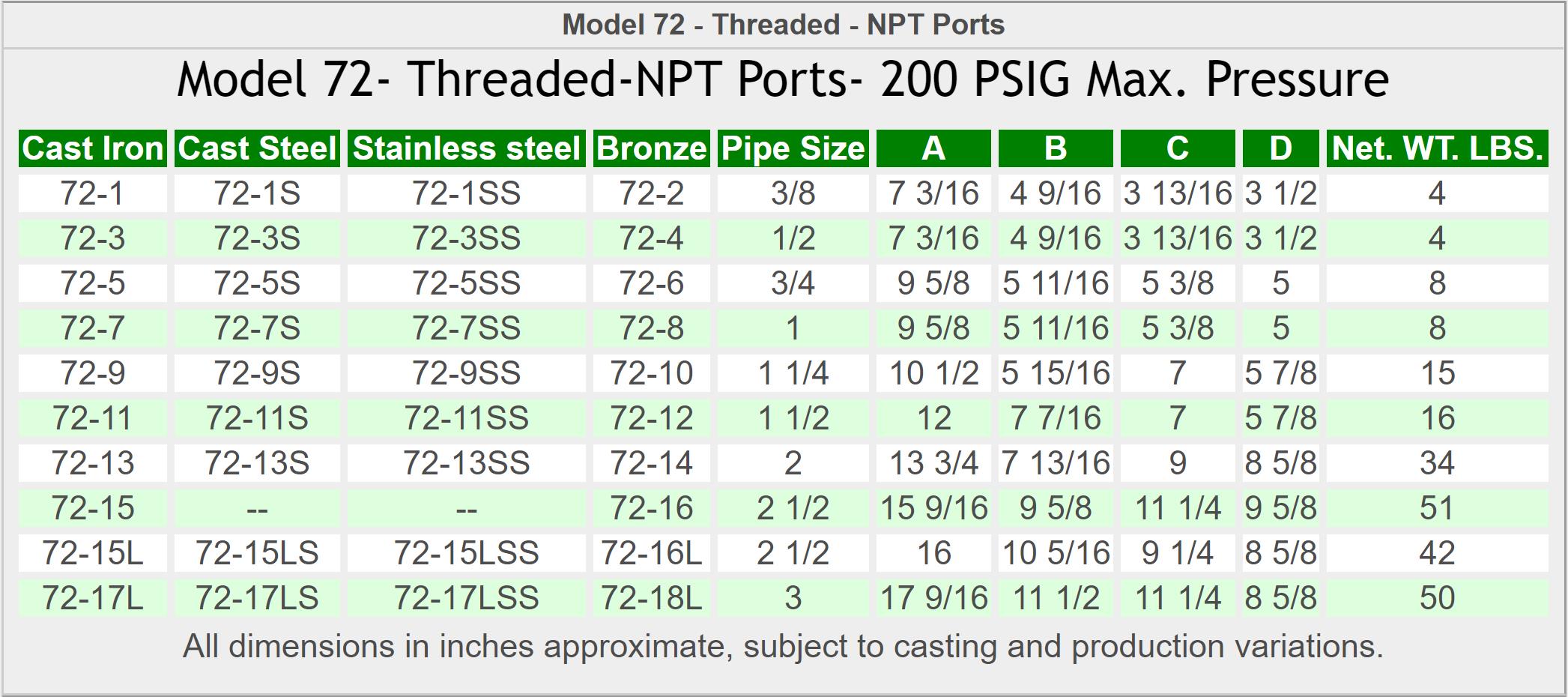 pressure up to 200 PSIG. Yoke closure permit easy access