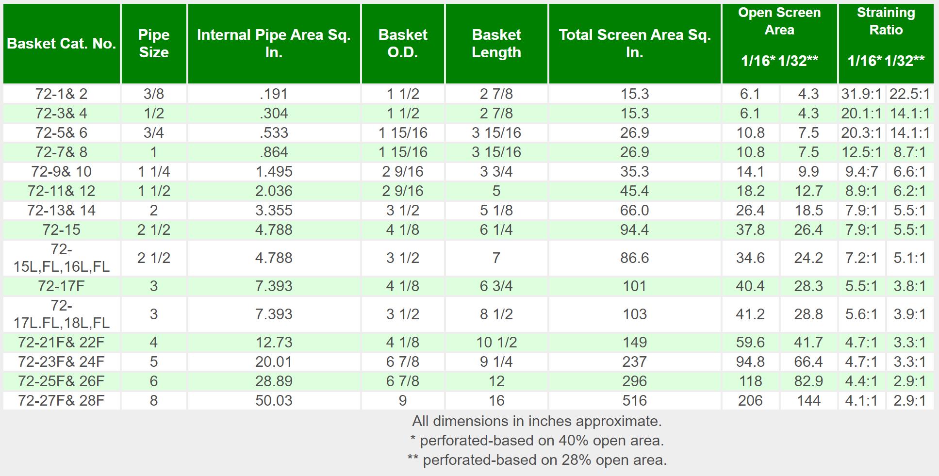 The open area ratios of two common perforated metal sizes are given in the accompanying table. strainer baskets are available in many