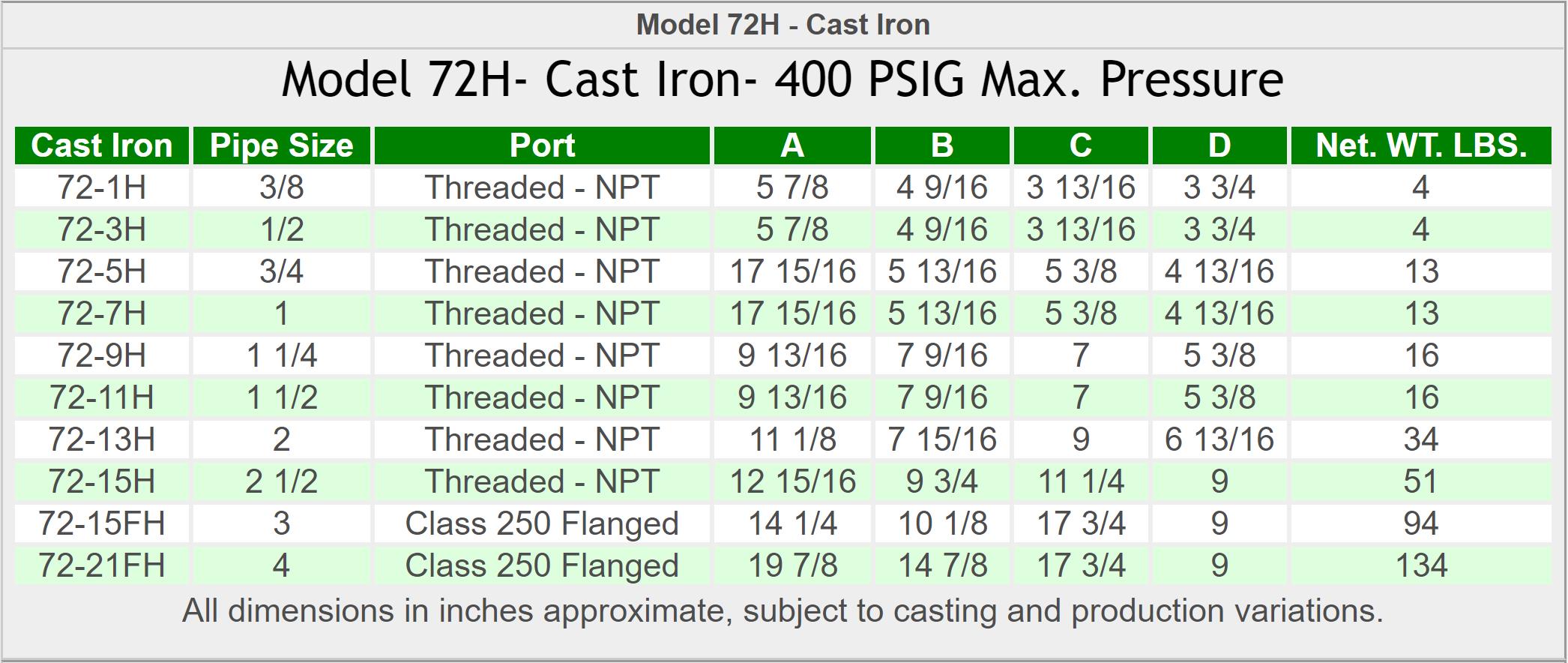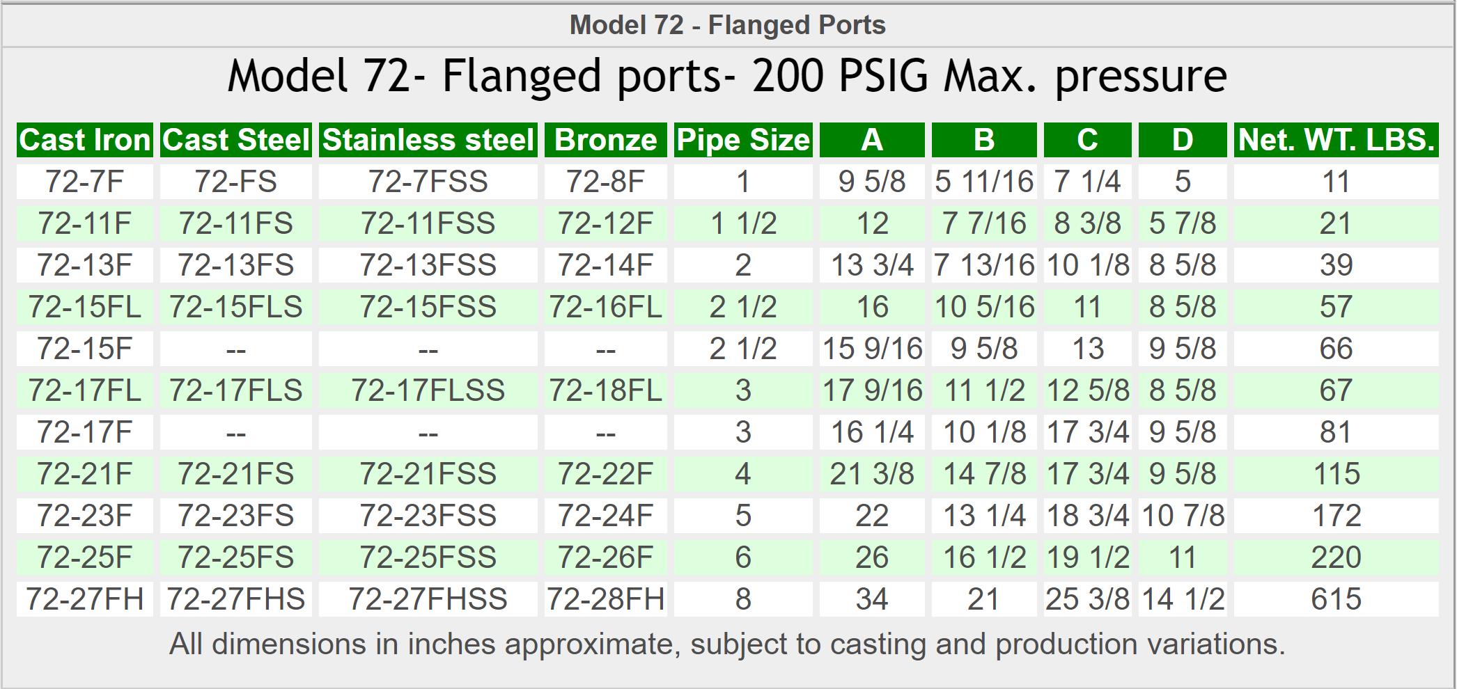 pressure up to 200 PSIG. Yoke closure permit easy access
