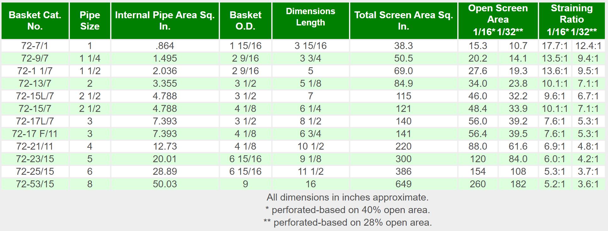 The open area ratios of two common perforated metal sizes are given in the accompanying table. strainer baskets are available in many